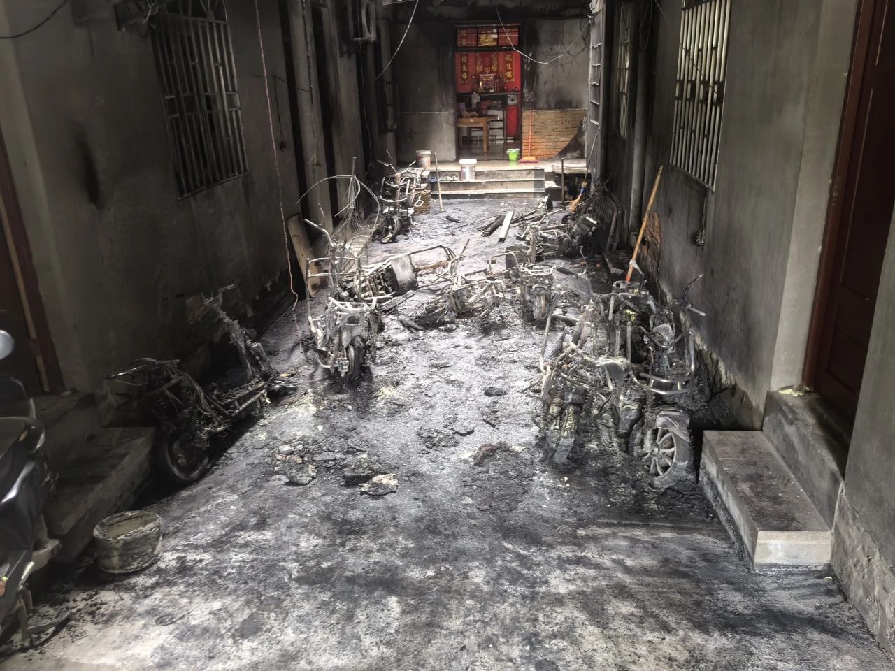 经调查,该自建房的天井处停放多辆电动自行车,且普遍存在“飞线”充电等违规行为,房东未及时制止违规行为,且未设置任何消防设施。
