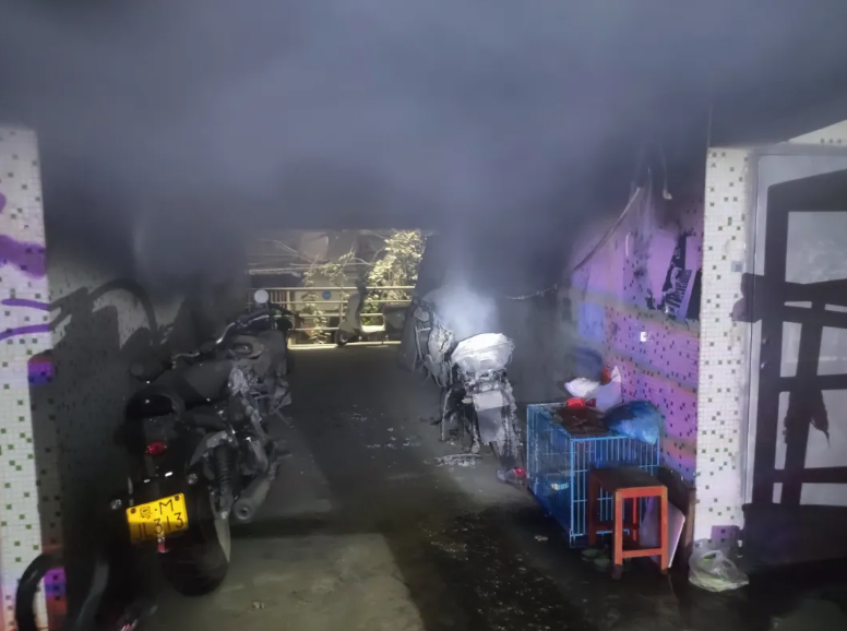 火灾造成3辆电动车、1辆摩托车不同程度受损。