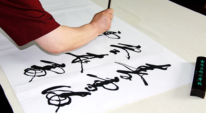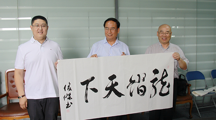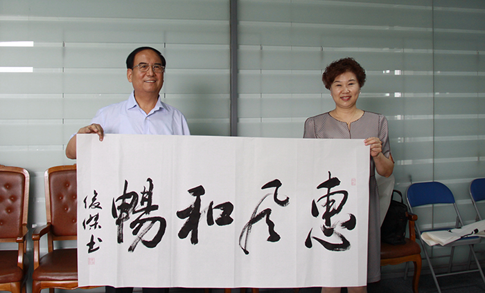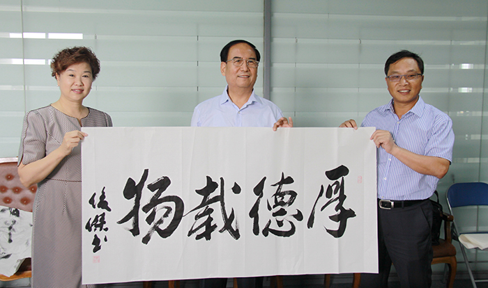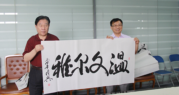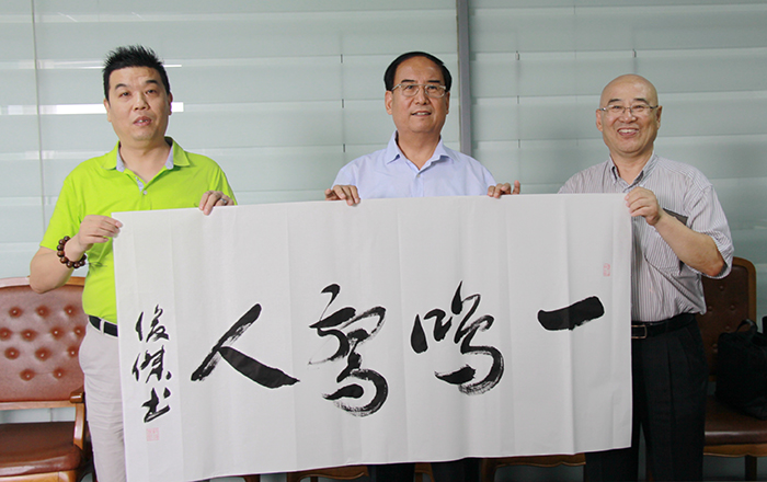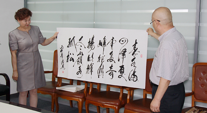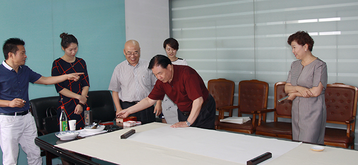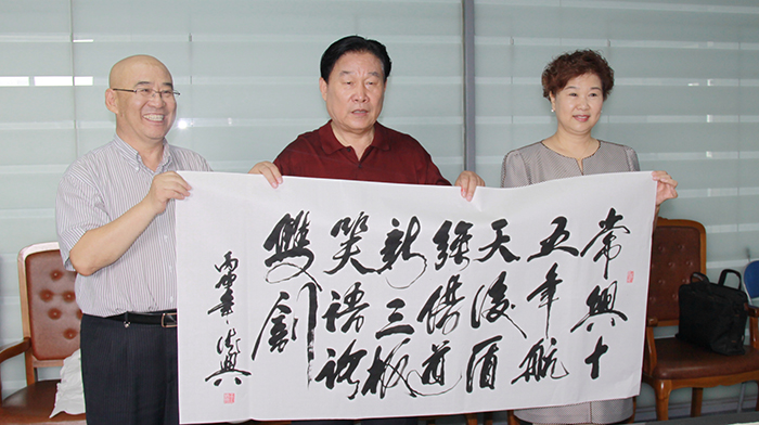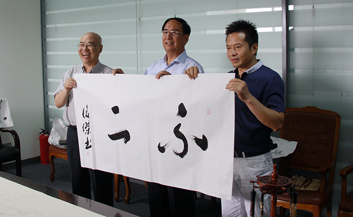 董事长杨迺文先生即兴作诗一首,由王书记提笔赐墨,表明创业艰难,现如今可以笑谈“双创”,创新、创业、创品牌。