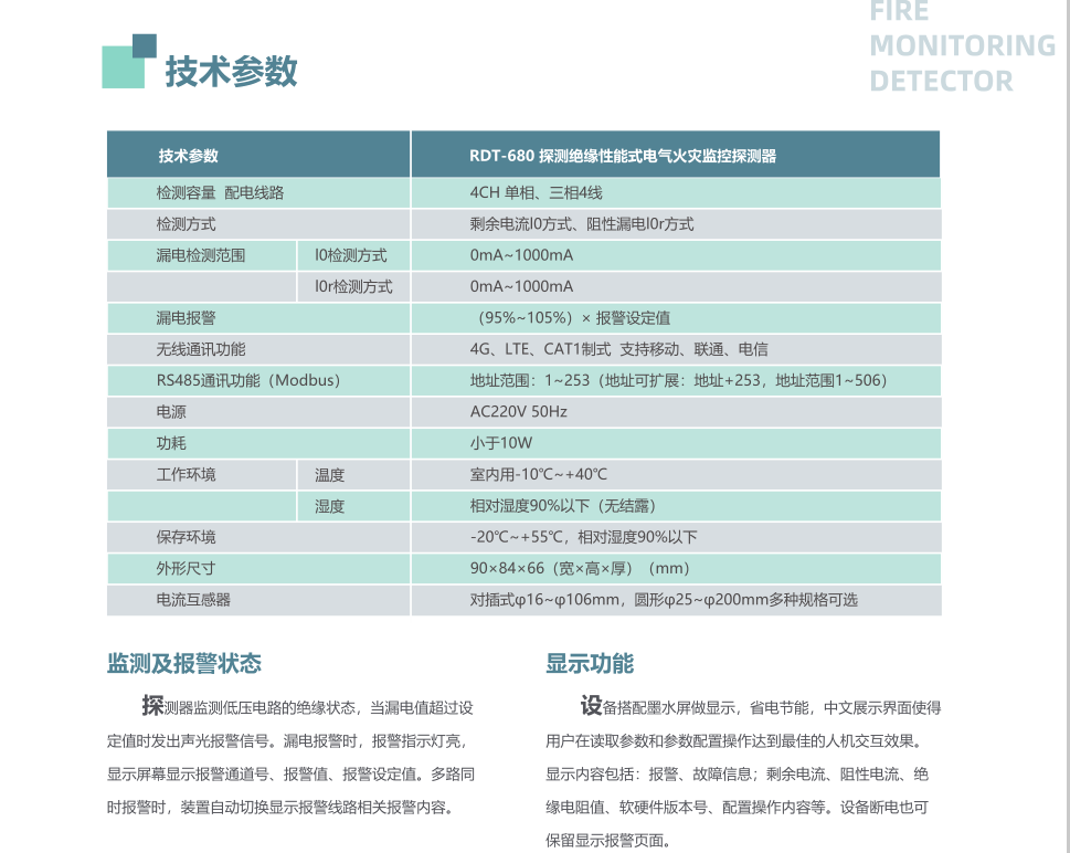 RDT-680 探测绝缘性能式电气火灾监控器