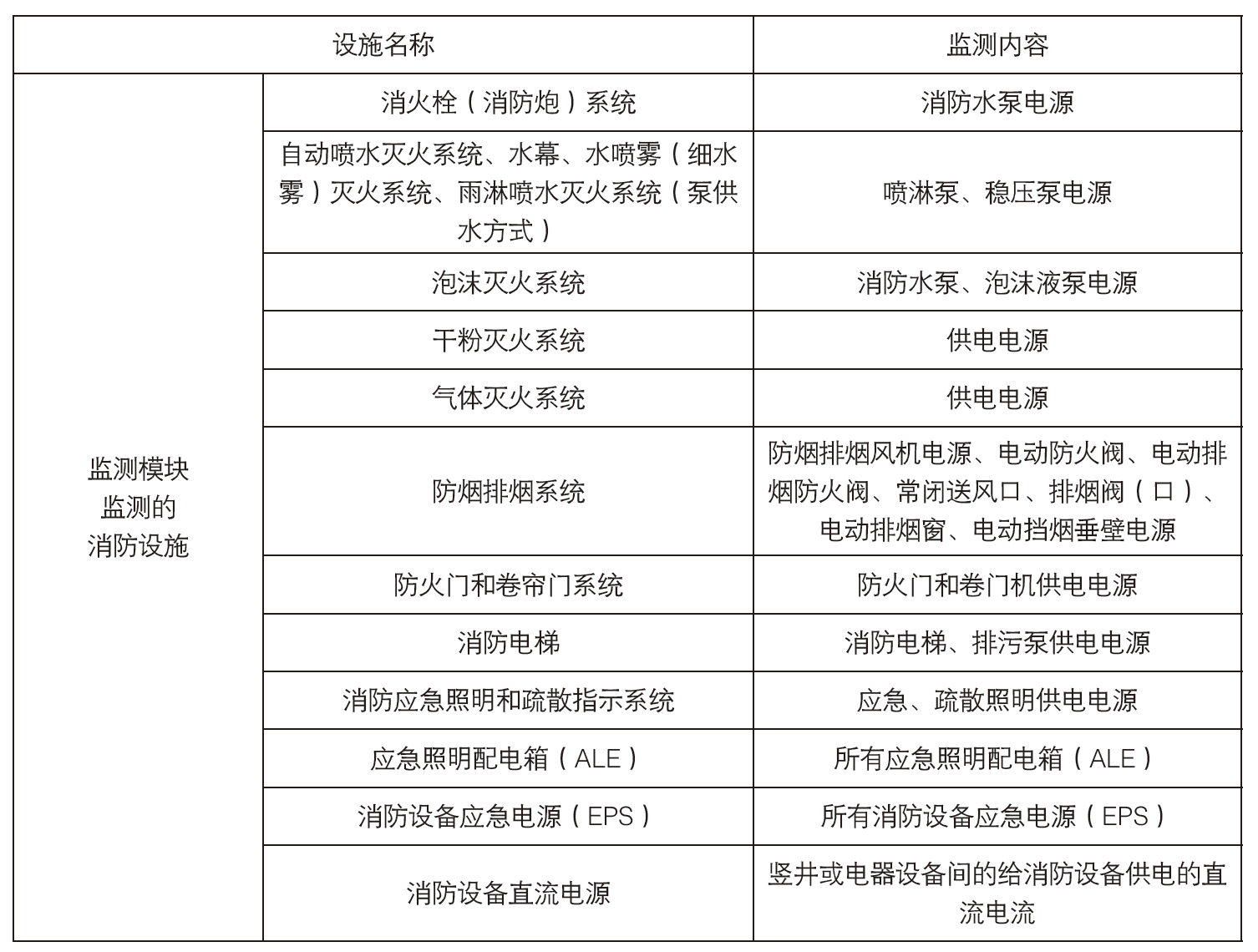 ●通常消防负荷及监测模块具体设置场所和监测内容如下图所示:
