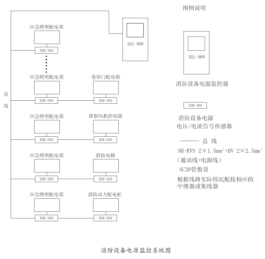 XDM-300/AC监测模块与XDJ-900监控器连接使用来构成消防设备电源监控系统