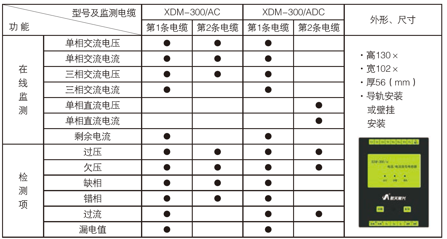 1 监测电压:过压(>110%电压额定值) 欠压(<85%电压额定值)